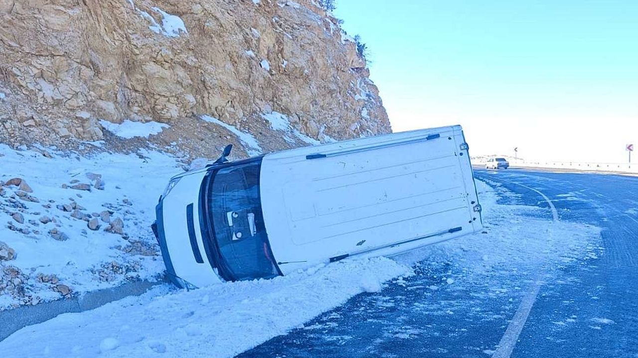Edinilen bilgilere göre, 56 AAK 580 plakalı araç, yol yüzeyinde oluşan buzlanma nedeniyle sürücüsünün direksiyon hâkimiyetini kaybetmesi sonucu kontrolden çıkarak devrildi.