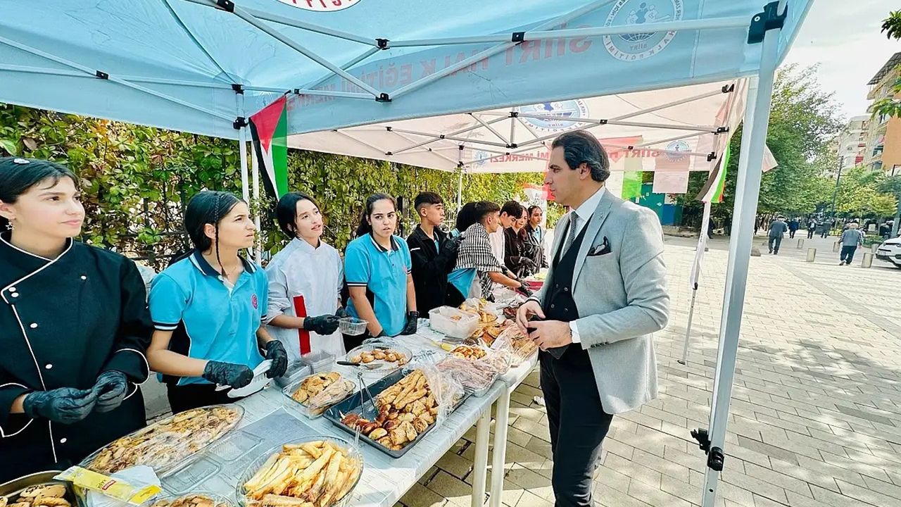 Okul bahçesinde düzenledikleri kermeste el emeği ürünlerini satışa sunan öğrenciler, elde ettikleri geliri Gazze’deki mazlumlar için bağışlayacaklarını açıkladı.