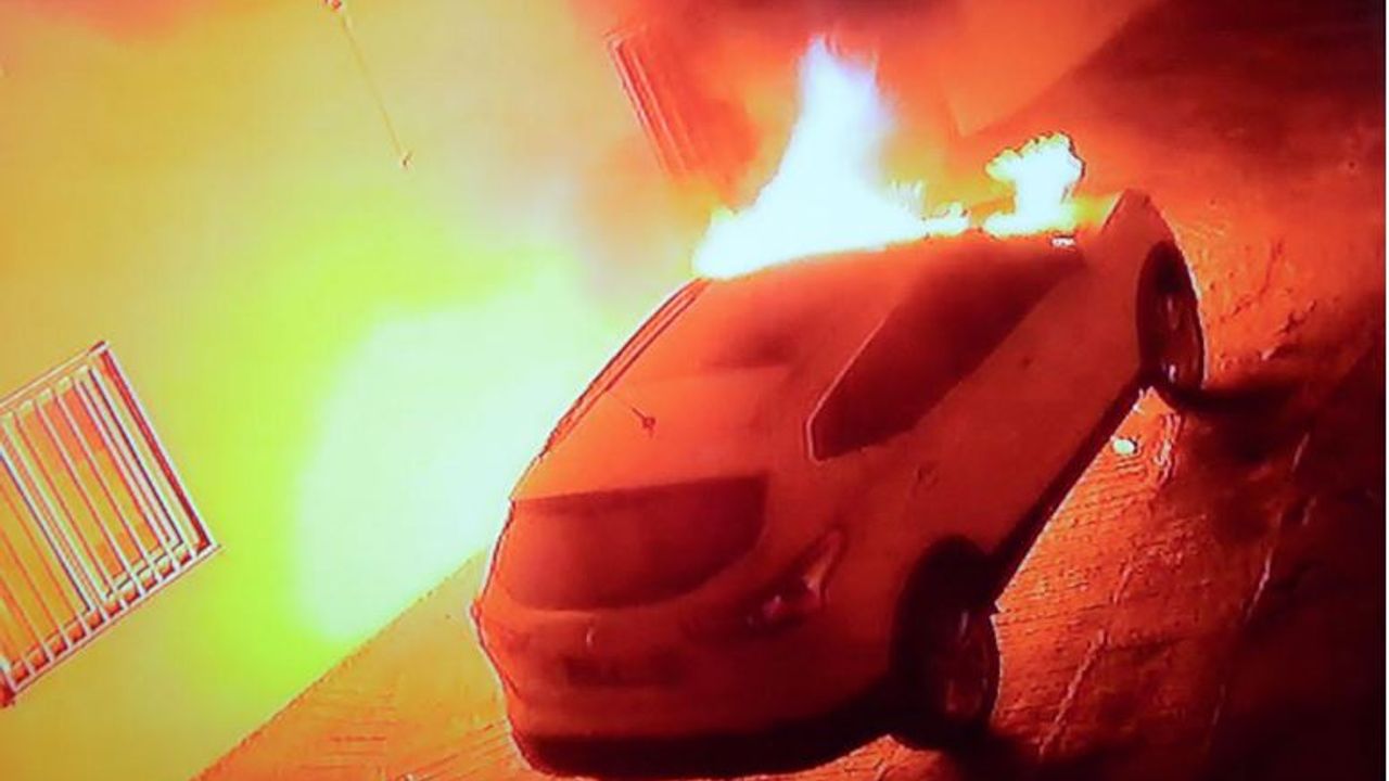 Kısa sürede alevlere teslim olan araç kullanılamaz hale gelirken, olay anına ait güvenlik kamerası görüntüleri ortaya çıktı.