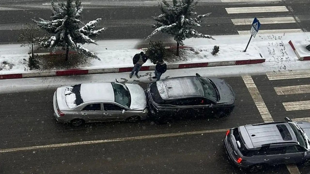 Edinilen bilgilere göre, kar yağışı nedeniyle kayganlaşan yolda sürücülerin direksiyon hakimiyetini kaybetmesi sonucu maddi hasarlı trafik kazası meydana geldi. Kazaya karışan araçlarda maddi hasar oluşurken, olay yerine polis ekipleri sevk edildi.