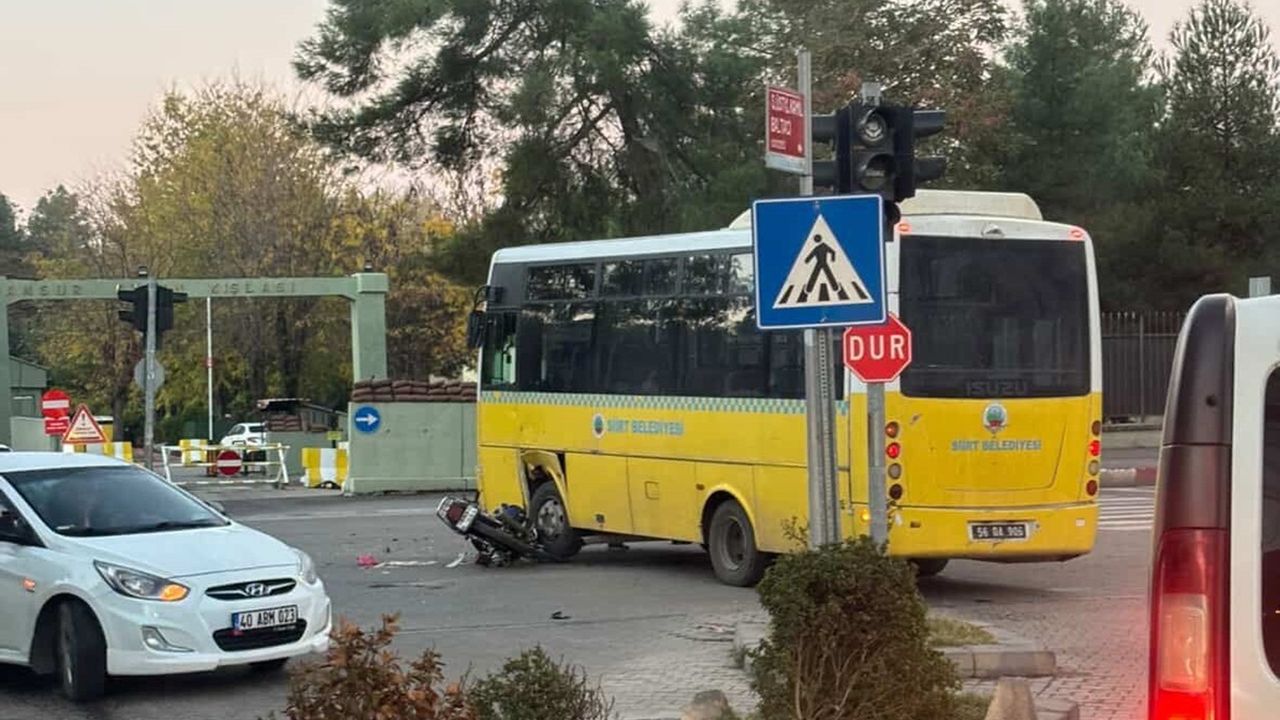 Olay, dün sabah saatlerinde 15 Temmuz Demokrasi Meydanı’nda yaşandı. Ceylan K. yönetimindeki Siirt Belediyesi’ne ait 56 DA 906 plakalı şehir içi yolcu otobüsü ile Dursun Tosun’un kullandığı motosiklet çarpıştı.