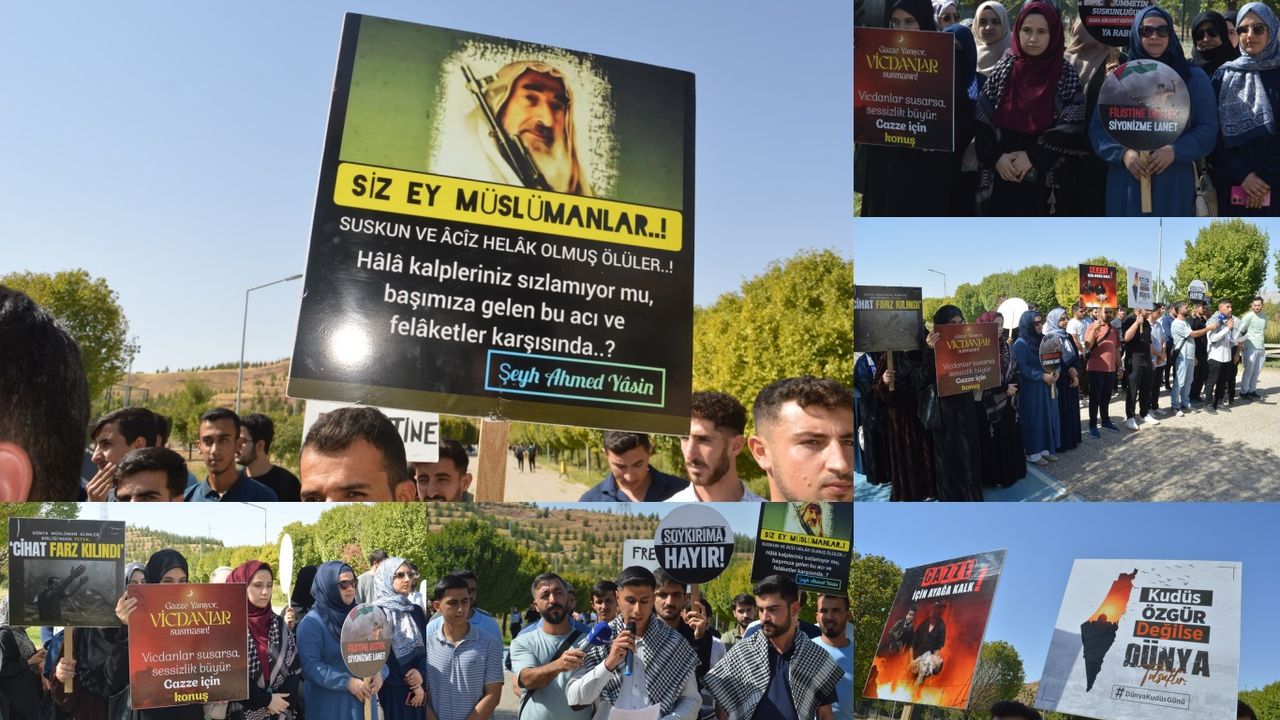 “Bizler, Siirt Üniversitesi Düşünce ve Medeniyet Topluluğu olarak; tarihin omuzlarımıza yüklediği bu sorumluluğun farkındayız. Bugün bu kampüste sadece bir yıl dönümünü anmak için değil; ümmetin kanayan yarasına ses olmak, mazlumun çığlığına yankı katmak, hakikat adına sözümüzü söylemek için bir aradayız. Filistin'de düşen her bomba, yıkılan her ev, yetim kalan her çocuk sadece Gazze'nin değil, insanlığın yüreğine düşen bir yaradır. Ve biz bu yarayı sarmak için burada olduğumuzu haykırmak istiyoruz.”