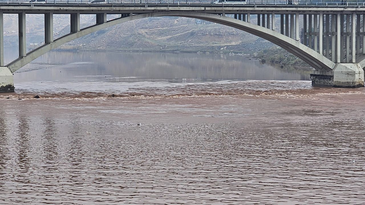Şırnak ve çevresinde etkili olan sağanak yağışların ardından Cizreye içme suyu temin edilen Dicle Nehri’nin rengi kızıla boyandı.