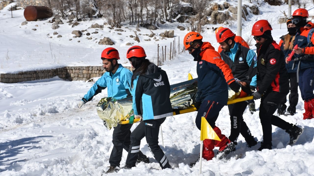 Eğitim kapsamında Namaz Dağı eteklerinde düzenlenen çığ tatbikatında ekipler, senaryoya göre çığ altında kalanları kurtardı.
