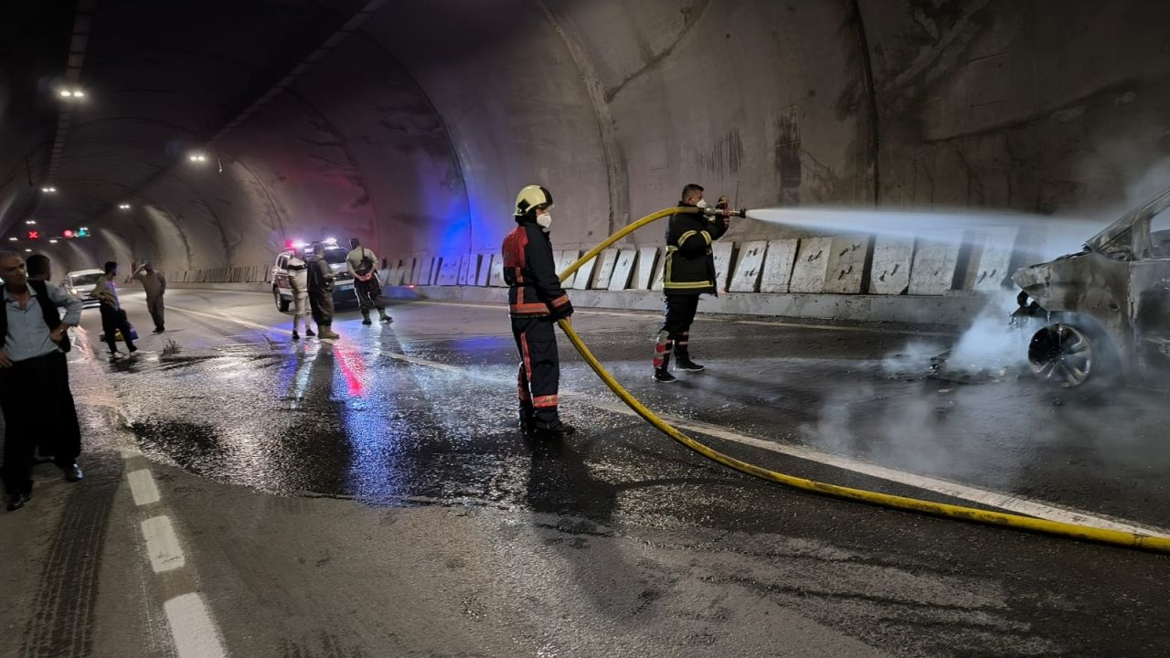 Ortabağ Tüneli'nde seyir halindeki E.Ö. yönetimindeki plakası öğrenilemeyen hafif ticari aracın motor kısmı alev almaya başladı.