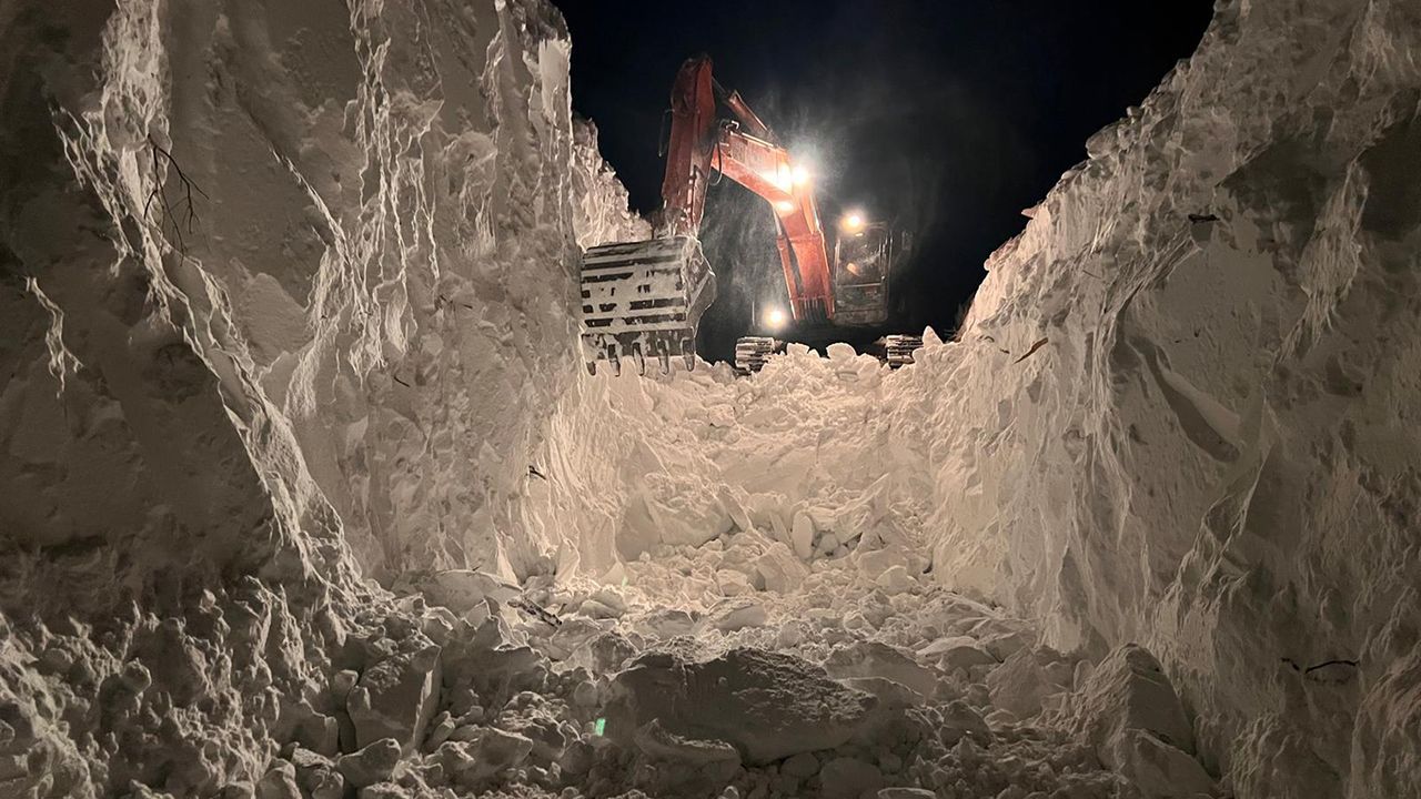 Birçok bölgede çığ düştüğü için ilerlemekte zorlanan il özel idare ekipleri ağır iş makinalarıyla çalışıyor.