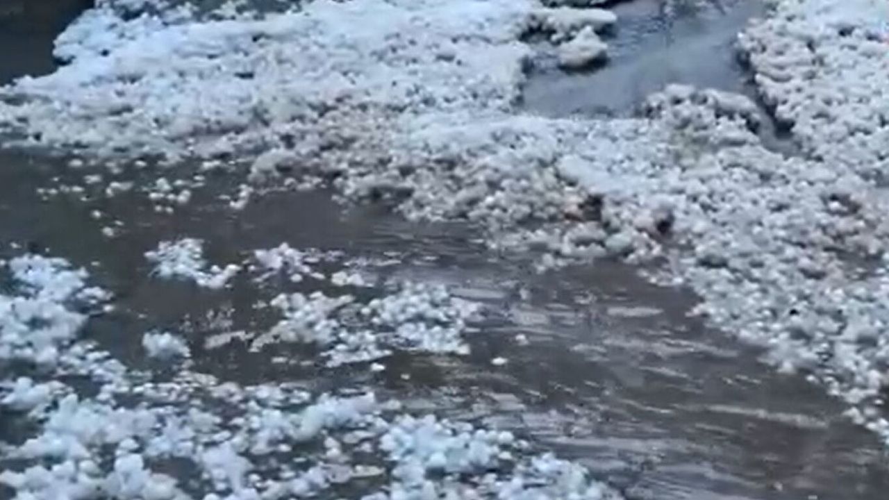 Şiddetli gök gürültülü sağanak yağışın ardından dolu etkili oldu. Dereler taştı her yer beyaza büründü.
