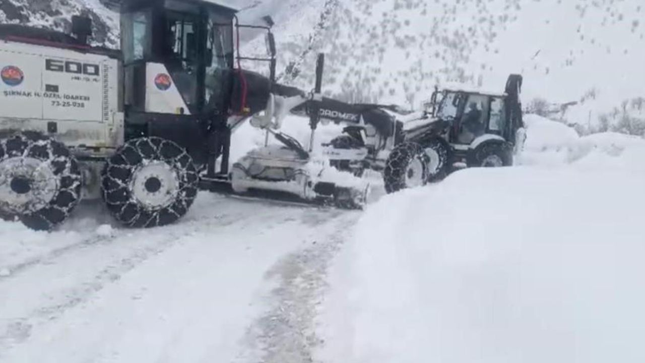 Şırnak'ın Beytüşşebap ilçesinde günlerdir etkili olan kar yağışı sonrası kapanan köy yollarında çalışmalar sürüyor.