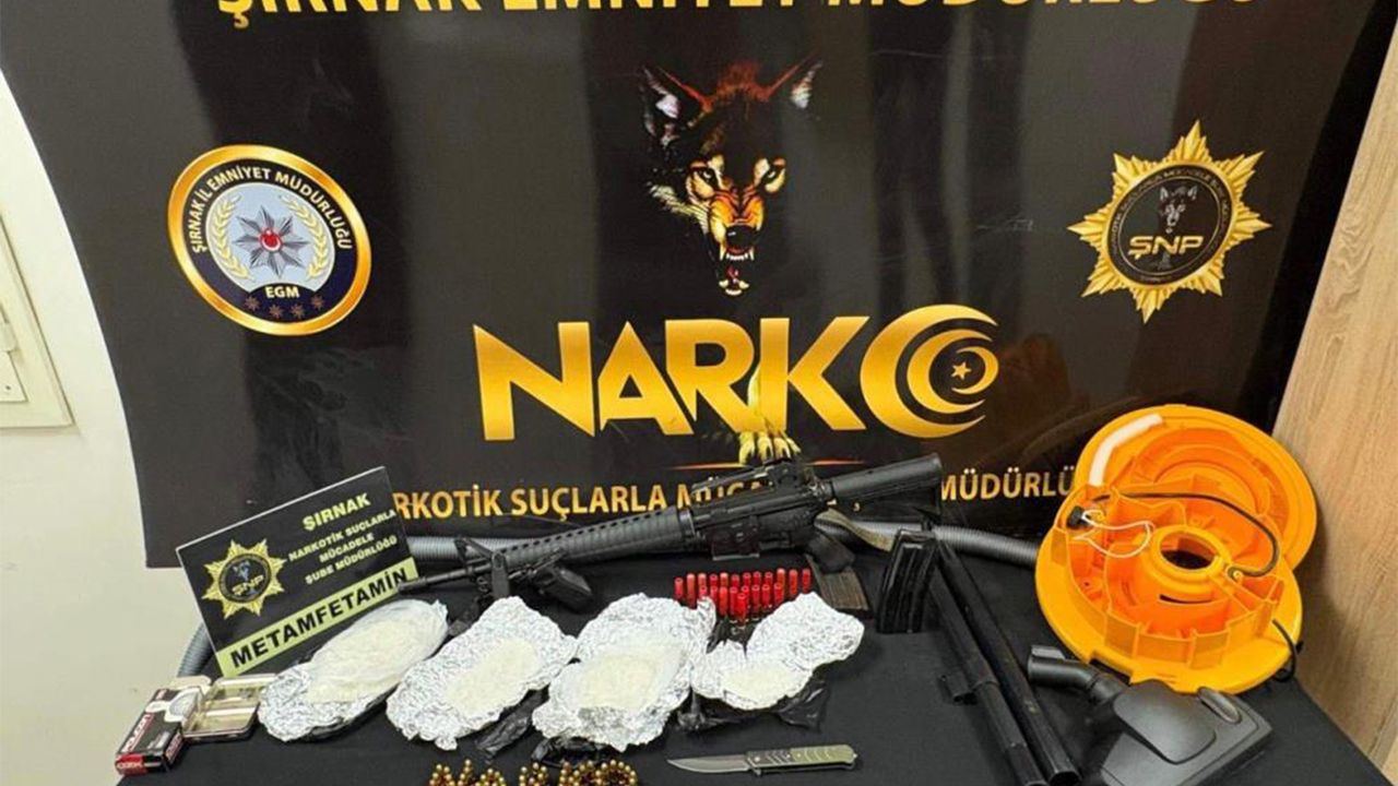 Yapılan aramalarda 506 gram metamfetamin, 3 gram esrar, 21 sentetik ecza, uyuşturucu kullanma aparatı, ruhsatsız av tüfeği, tabanca gövdesi, çeşitli çaplarda çok sayıda fişek, bıçak ve şarjörler ele geçirildi.