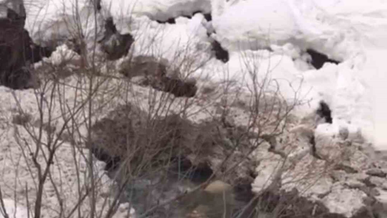 Kar birikintilerinin suyun akış yönünü değiştirmesi nedeniyle dere kenarlarında evleri bulunan vatandaşlar tedirginlik yaşıyor.