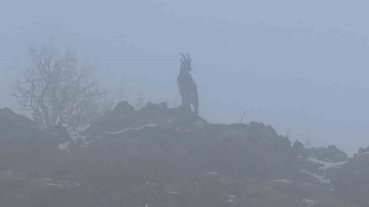 Doğal yaşamın önemli parçalarından biri olan dağ keçilerinin sisle bütünleşen görüntüsü görsel bir şölen sunarken, bölgenin zengin yaban hayatını da bir kez daha ortaya koydu. Zaman zaman yol kenarına kadar inen keçiler, kısa süreliğine görüldükten sonra yeniden dağlık alana doğru ilerledi.