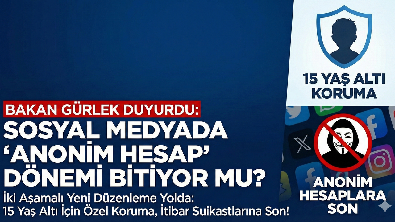 Adalet Bakanı Akın Gürlek, sosyal medya düzenlemesine ilişkin çalışmaların iki aşamadan oluştuğunu açıkladı. Gürlek, 15 yaş altına yönelik çalışmanın Aile ve Sosyal Hizmetler Bakanlığı tarafından yürütüldüğünü, Adalet Bakanlığı’nın ise anonim hesaplara yönelik düzenleme üzerinde çalıştığını söyledi.