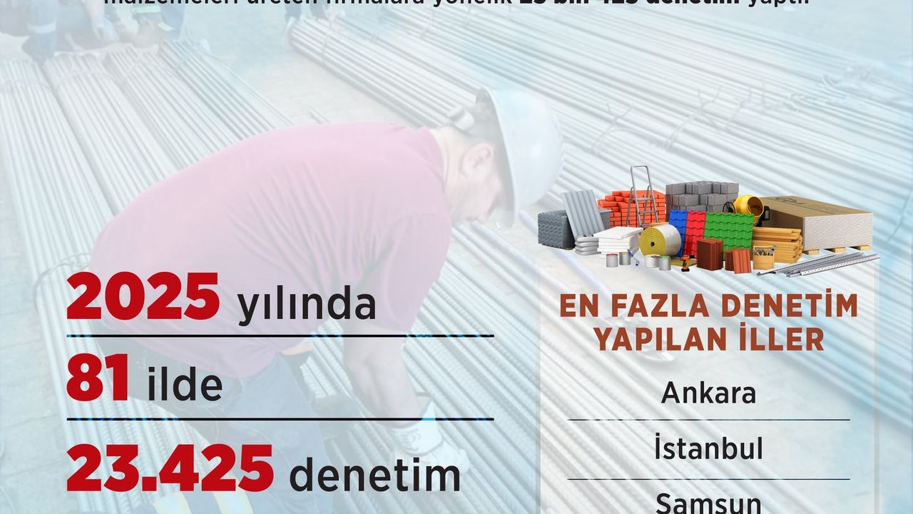 Çevre, Şehircilik ve İklim Değişikliği Bakanlığı, yapı malzemeleri sektöründe ürün güvenliğinin sağlanması amacıyla denetimlerini sürdürdü. Mesleki Hizmetler Genel Müdürlüğü koordinasyonunda 2025 yılı boyunca 81 ilde yürütülen çalışmalarda toplam 23 bin 425 denetim gerçekleştirildi.