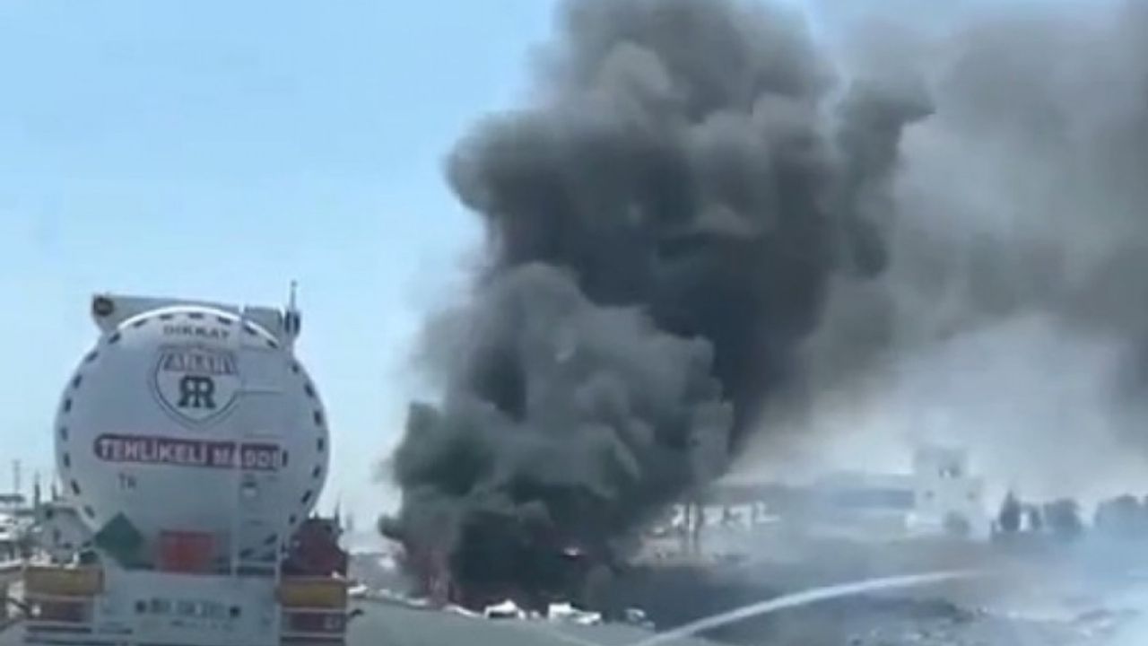 yangını fark ederek aracı emniyet şeridine çekti ve tırın kupa bölümünü