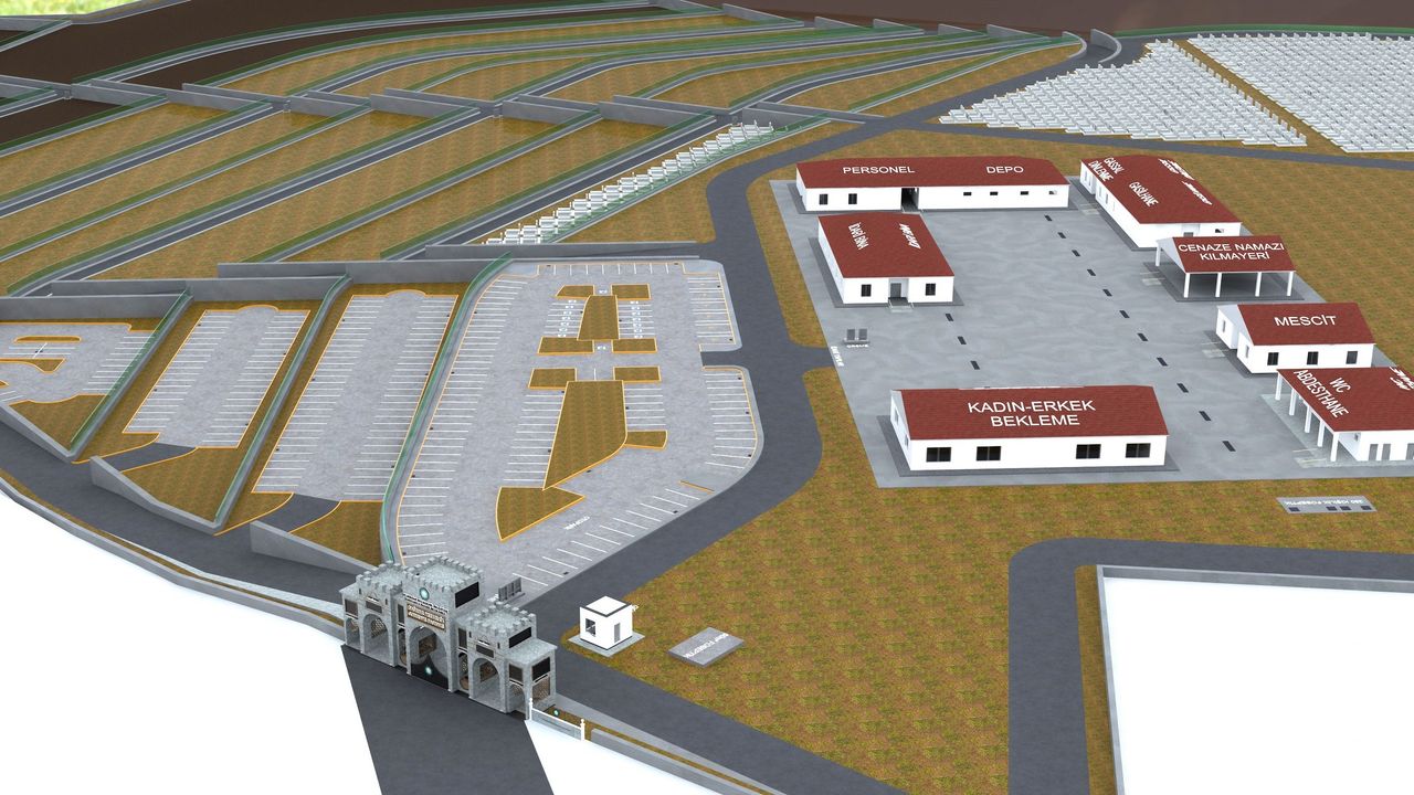 Hazırlanan proje kapsamında toplam 3 bin 584 metrekare kapalı alan, 10 bin 120 metrekare otopark alanı ve geri kalan alanlarda ise mezarlık alanı ve çevre düzenlemesi olacak şekilde planlandı.