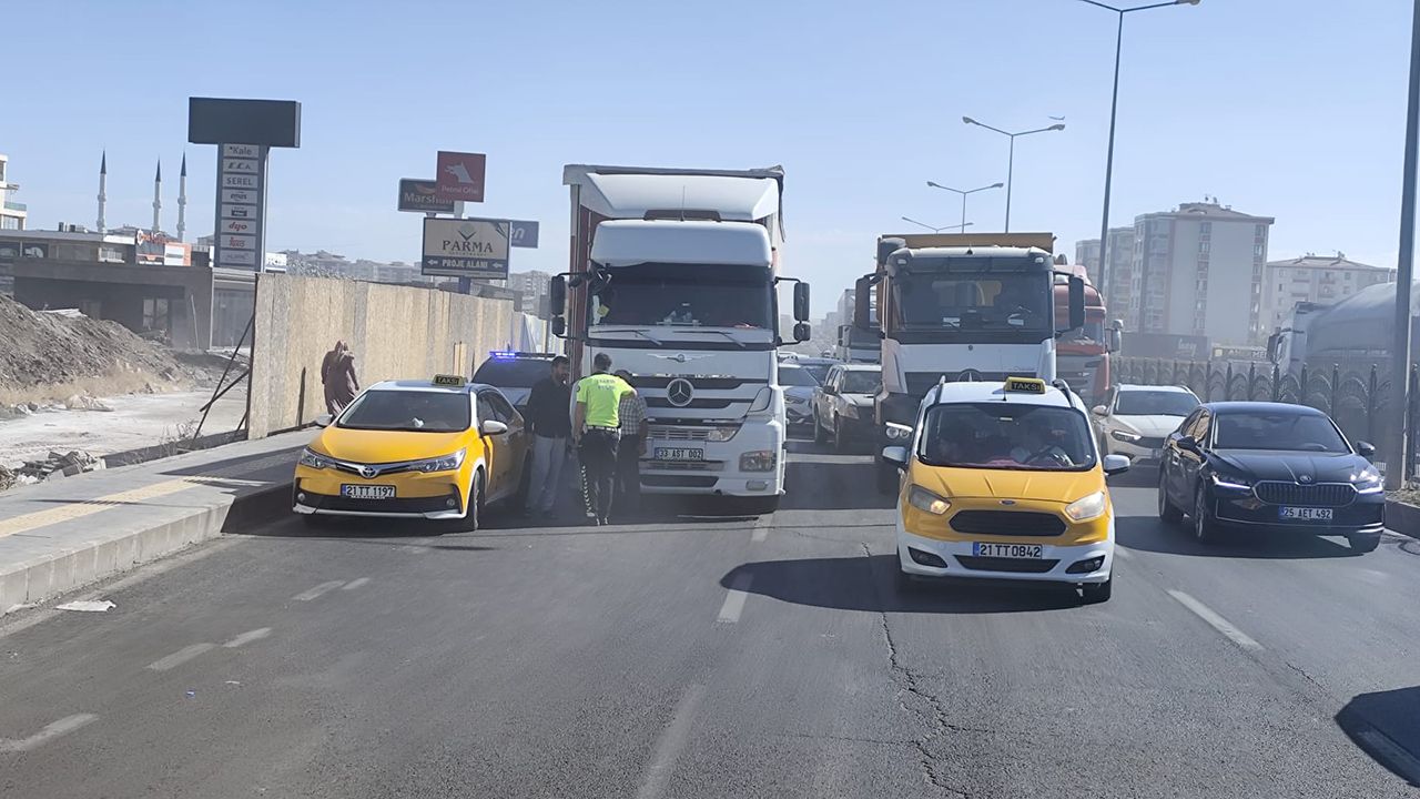 Diyarbakır'da Talaytepe Kavşağı'nda bu sabah meydana gelen kazada bir TIR, yoğunluk nedeniyle sıkışan bir ticari taksiye sürttü. Çarpışmada araçta maddi hasar oluşurken, bölgedeki trafik bir süre tamamen durma noktasına geldi.