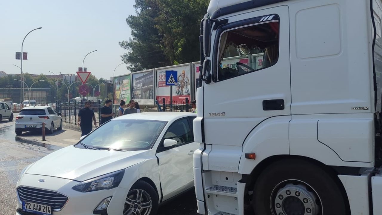 Gültepe Mahallesi'nde bulunan kavşakta tır ile otomobilin çarpışması sonucu yaralanan olmazken, kazada araçlarda maddi hasar oluştu.