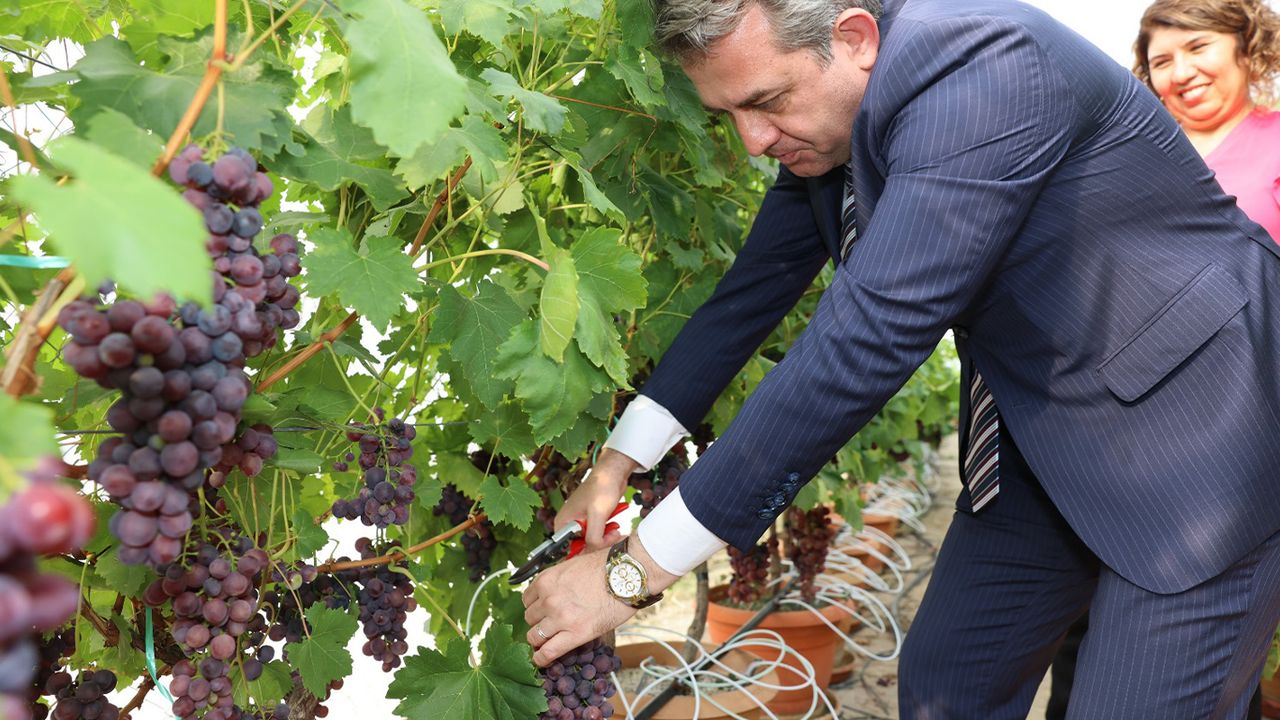 Bahçe Bitkileri Bölümü Öğretim Üyesi Prof. Dr. Serpil Tangolar, topraksız kültür sisteminde örtü altı üzüm üretimi hakkında bilgi verdi. Prof. Dr. Tangolar, özellikle küresel ısınmanın etkisiyle artan su kıtlığına dikkat çekerek, üretim süreçlerinde süper emici polimerler olan hidrojellerin kullanımının su tasarrufu ve verimlilik açısından büyük önem taşıdığını vurguladı. Prof. Dr. Tangolar ayrıca, "Plastik seramızda erkenci üzüm çeşitleri yetiştiriyoruz. Bu sistem, örtü altı tarımın yaygınlaştırılması ve üreticiler için yeni bir yol haritası oluşturulması açısından oldukça değerli" şeklinde konuştu.
