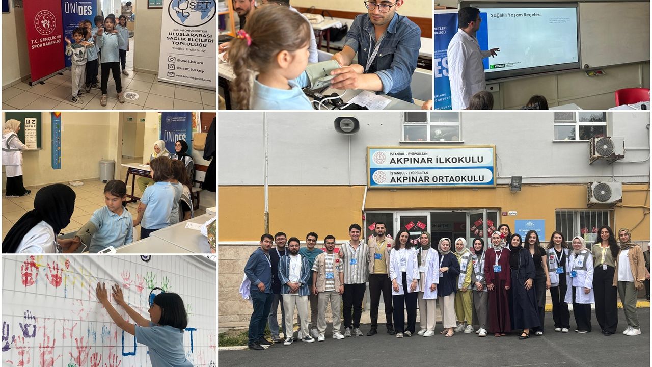 Gençlik ve Spor Bakanlığı ÜNİDES projesi desteğiyle İstanbul Eyüpsultan'da bulunan Akpınar İlkokulu'nda projeyi hayata geçiren USET gönüllüleri, öğrencilere farklı alanlarda sağlık taramaları yaparak çeşitli etkinlikler gerçekleştirdi.