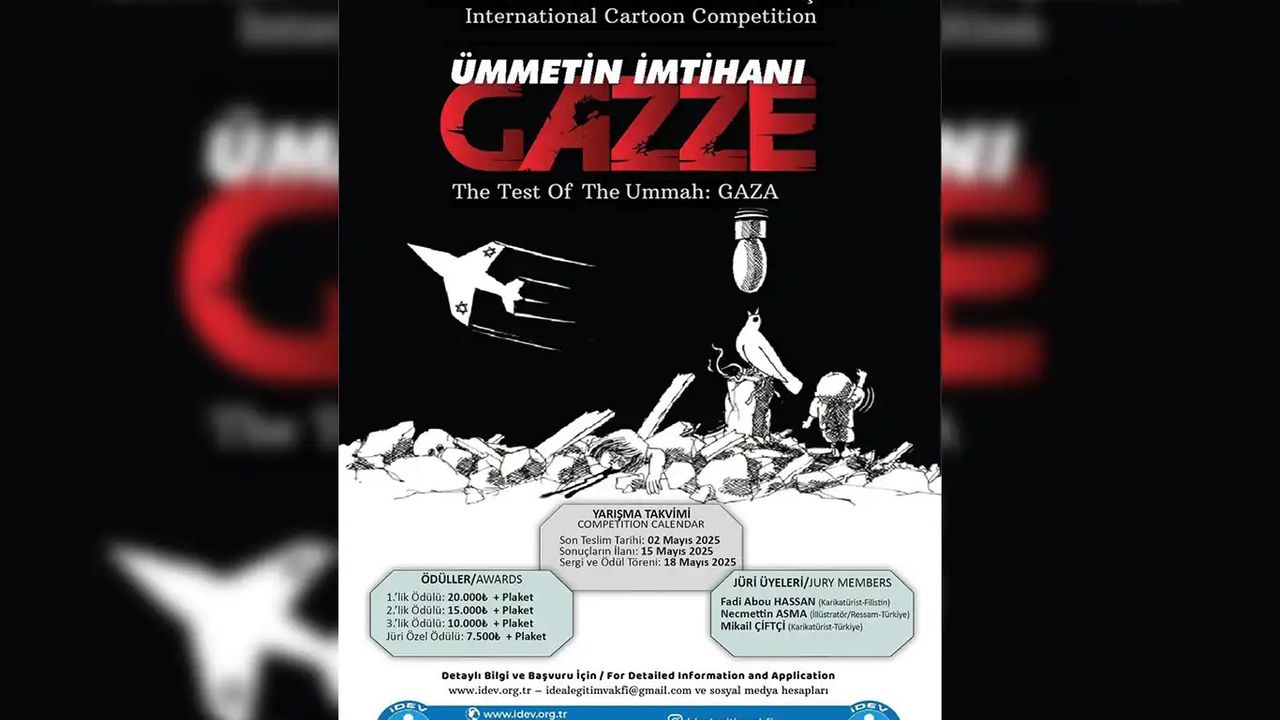 Taş, "Malumunuz, bir buçuk yıldır bugün terör şebekesi israil, mazlum Gazze halkına bir soykırım uygulanmaktadır. Mazlum Gazze halkı yaşadığı coğrafya gereği bugün aç, susuz kalmakta. Sağlık konusunda ciddi anlamda problem yaşanılmaya başlandı. Yemek, gıdaya, ulaşamıyorlar. Bugün tüm dünyanın gözleri önünde, Amerika'dan da destek alarak, tüm dünya müstekbir ülkeleri tarafından Gazze halkı bir soykırıma maruz bırakılmaktadır. Evet, bizler de bu yapılan vahşeti gündemden düşürmeme adına, bir kamuoyu oluşturabilme adına, İdeal Eğitim Vakfı (İDEV) olarak, uluslararası 'Ümmetin İmtihanı Gazze' konulu bir karikatür yarışması düzenledik." dedi.