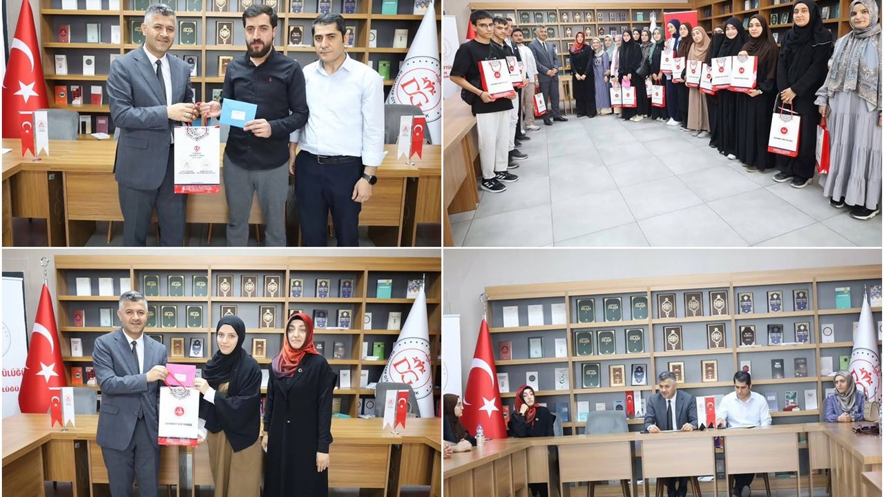 Diyanet İşleri Başkanlığı'nın ülke genelinde düzenlemiş olduğu "Umre Ödüllü Bilgi Yarışması" kapsamında, Şahinbey ilçesinde ilk 20'ye giren öğrencilere ödülleri Diyanet Gençlik Merkezinde İlçe Müftüsü Mehmet Arslaner tarafından tarafından takdim edildi.