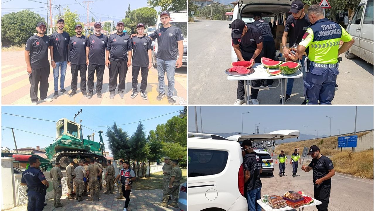 Gün boyu süren çalışmalar boyunca, sıcakta ve duman altında fedakârca görev yapan ekiplere ulaştırılan içme suyu, soğuk içecekler, meyve suyu, sandviç ve atıştırmalık gıdalar, sahadaki çalışanların moralini yükseltti.