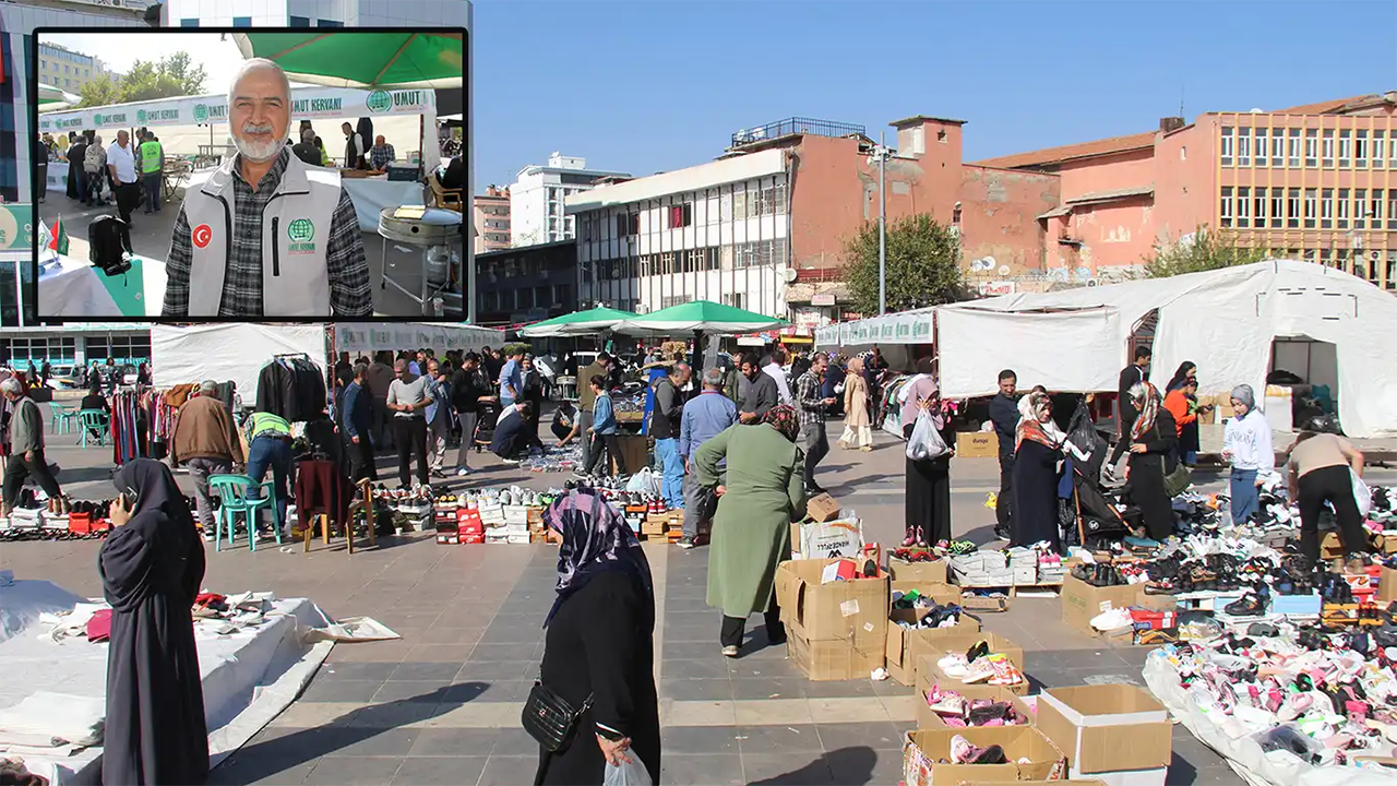 "Bir haftadan beridir yoğun bir tempoyla çalıştık. Sağ olsunlar hayırseverlerimiz, bağışçılarımız, gönül dostlarımız, kadın temsilcilerimiz adeta bir seferberlik ilan ettiler. Tabi ki bunun öncesi de var. Aylar öncesinden bunun alt yapısı oluşturuldu. Sahada hayırseverlerimize gittik, böyle bir çalışma yürüteceğimizi söyledik ve katkı sunmalarını talep ettik. Onlarda bizi yalnız bırakmadı. Bugün 8'inci gündeyiz ve görüldüğü üzere alan dolu ve ayakkabıdan giyime, yiyecekten elektronik eşyaya kadar her çeşit malzeme mevcut."