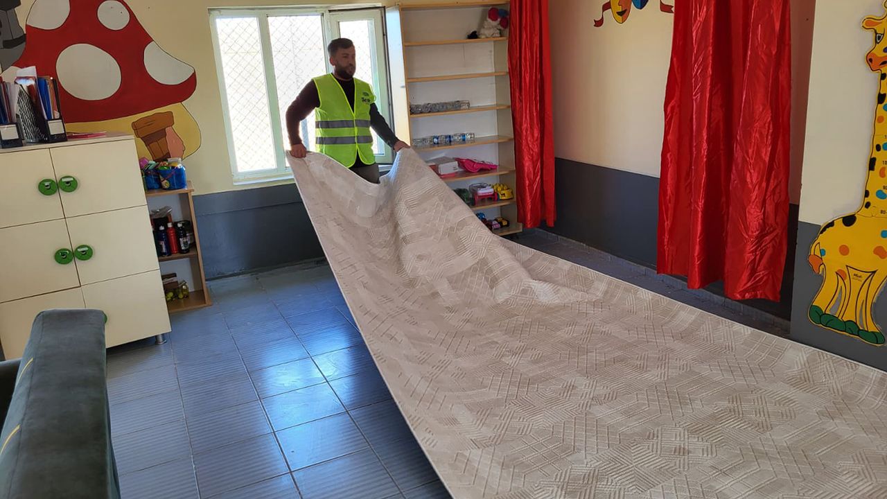 Okulların açılmasıyla birlikte Dereüstü İlkokulu’nda ihtiyaç sahibi öğrencilere kırtasiye desteğinde bulunan Umut Kervanı, anasınıfındaki halı ve perde eksikliğini de giderdi.