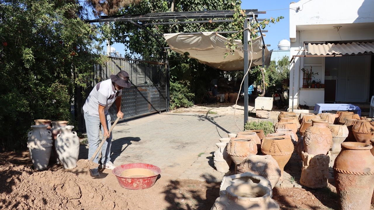 İlerleyen yaşına rağmen maharetli elleriyle çamuru sanata dönüştüren Cuma Aran, AA muhabirine, oğluyla mahallede çıkardıkları kırmızı ve killi toprağı atölyenin bulunduğu bahçeye taşıdıklarını, burada leğenlerin içerisinde suyla karıştırarak oluşturdukları çamuru bir gün beklettiklerini anlattı.