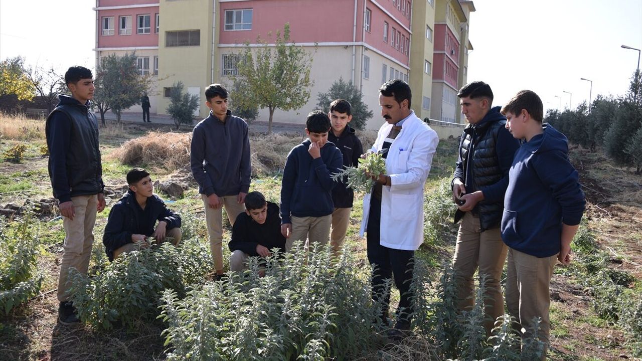Şanlıurfa'nın Siverek ilçesinde lise öğrencileri, okul bahçesinde oluşturulan uygulama alanında bir yandan tarımı öğrenirken diğer yandan ise bölgenin geleneksel ürünlerine alternatif olarak tıbbi ve aromatik bitki yetiştiriyor.