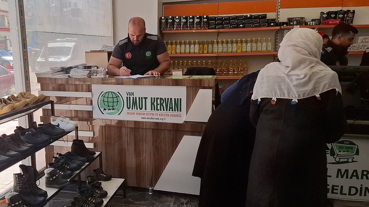 Van Umut Kervanı’nda kurulan sosyal market uygulamasıyla gerçekleştirilen yardımlarda, ihtiyaç sahibi aileler markete gelerek ihtiyaçlarını gönüllerince seçme imkânı buldu. Yardım organizasyonunun düzenli olarak yapıldığını belirten Umut Kervanı yetkilileri, dayanışma ve paylaşmanın önemine dikkat çekti.