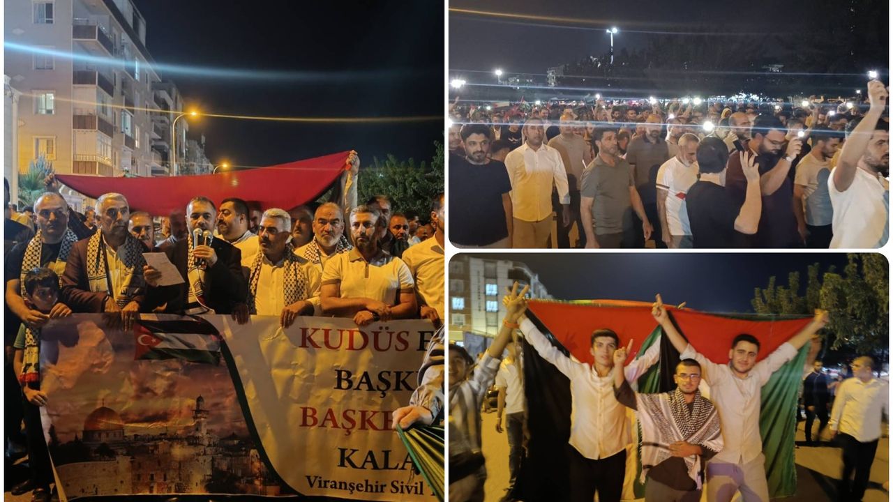 Yoğun katılımın olduğu programda vatandaşlar, Gazze’de yaşanan zulme karşı birlik ve dayanışma mesajı verdi. Ellerinde pankart ve dövizler taşıyan katılımcılar, Filistin halkına destek sloganları attı.