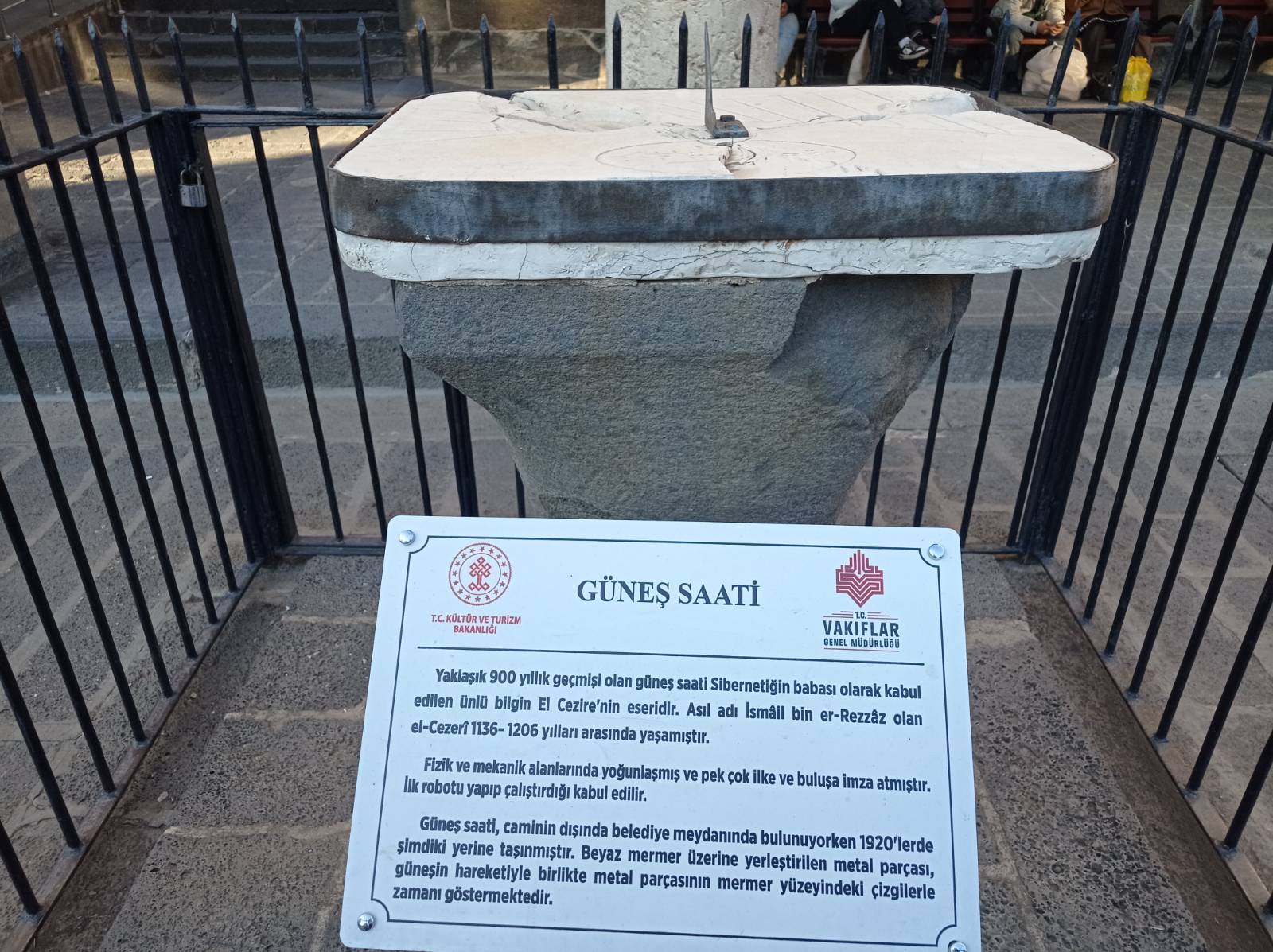 Selçuklu dönemi bilim insanı El-Cezeri’ye atfedilen bu eşsiz eser, yaklaşık 900 yıldır güneşin gölgesiyle zamanı göstermeye devam ediyor. Modern saatlerin gölgesinde unutulmaya yüz tutan bu yöntem, ziyaretçileri tarihle birebir temas ettiriyor.