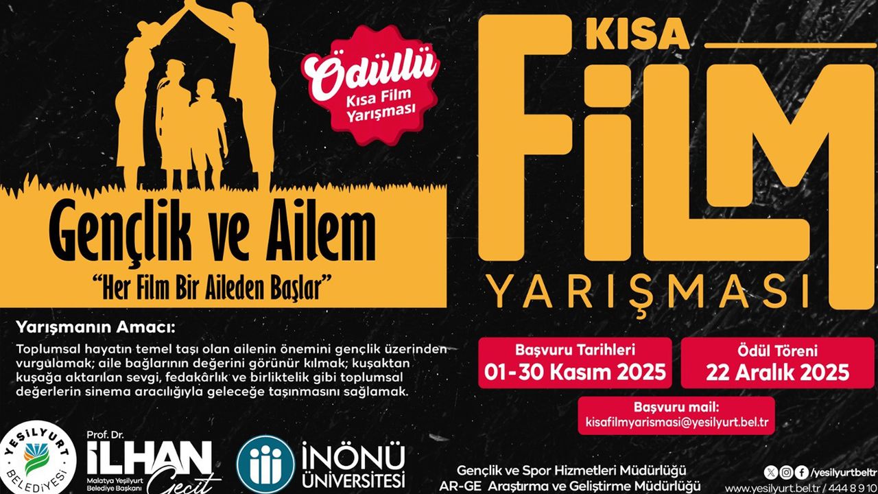 Yeşilyurt Belediyesi, sinemaya ilgi duyan gençleri teşvik etmek amacıyla 1 ile 30 Kasım günleri arasında "Kısa Film Yarışması" düzenleyerek, hikâyelerin beyaz perdeyle buluşmasına olanak sağlayacak.