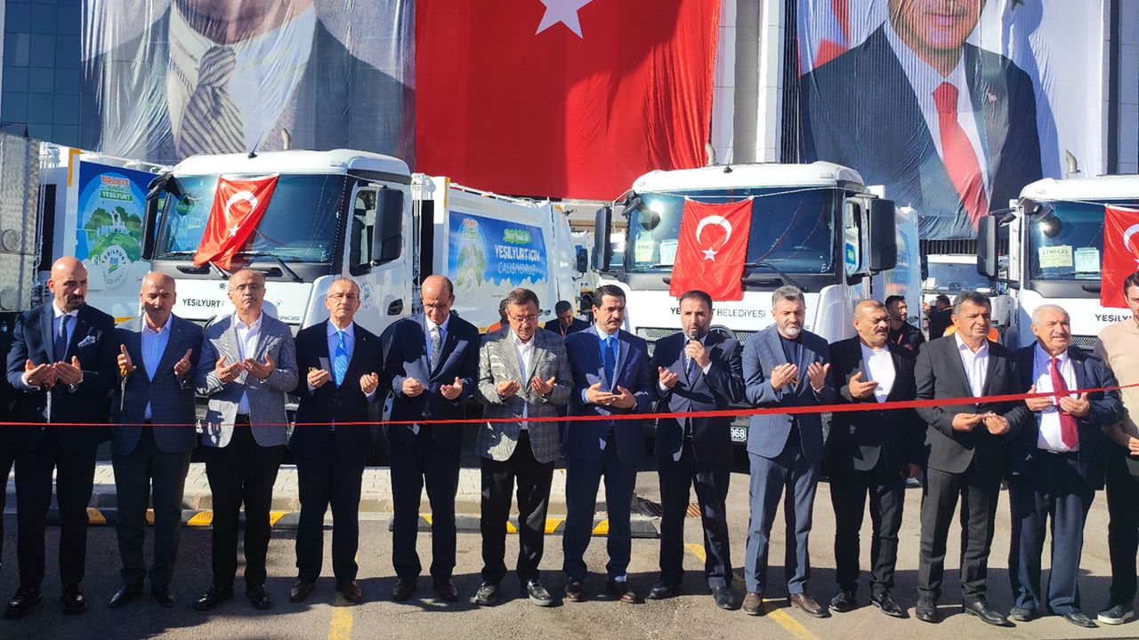 Protokol konuşmalarından sonra Yeşilyurt İlçe Müftüsü Dr. Hüseyin Bayrak'ın yaptığı duanın ardından Yeşilyurt Belediyesi Temizlik İşleri Müdürlüğü araç filosuna katılan 21 adet temizlik aracının kurdelâsı kesilerek hizmete sunuldu.