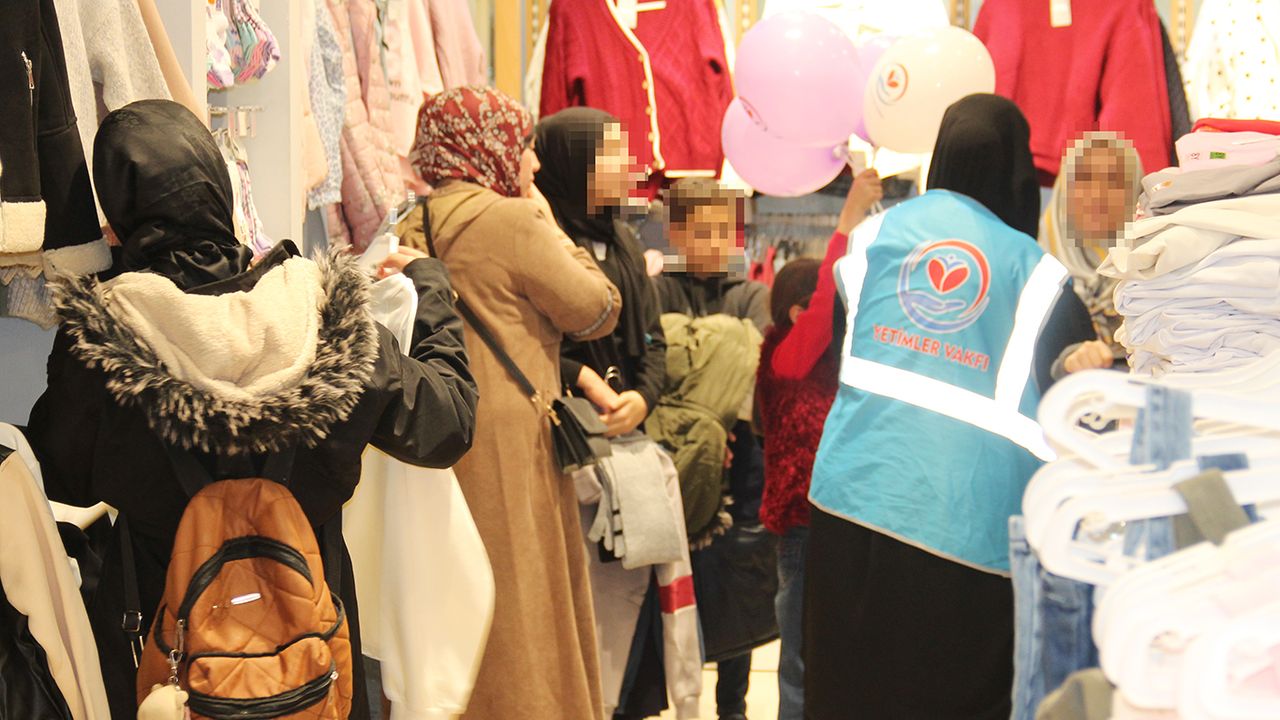 Giyim desteğinden yararlanan yetimler, aileleriyle birlikte bir giyim mağazasına giderek istedikleri kıyafet ve ayakkabıları seçme imkânı buldu.