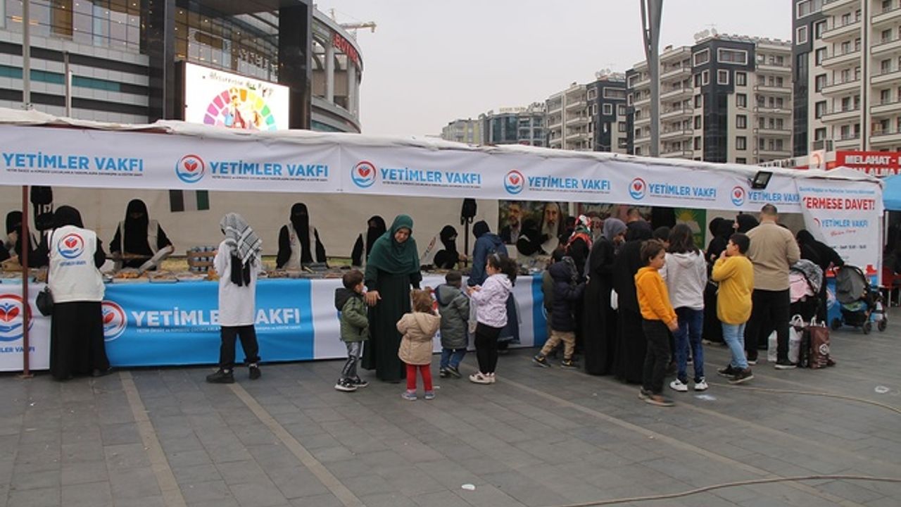 Çadırı önünde Yetimler Vakfı tarafından bugün açılan kermes, pazar günü
