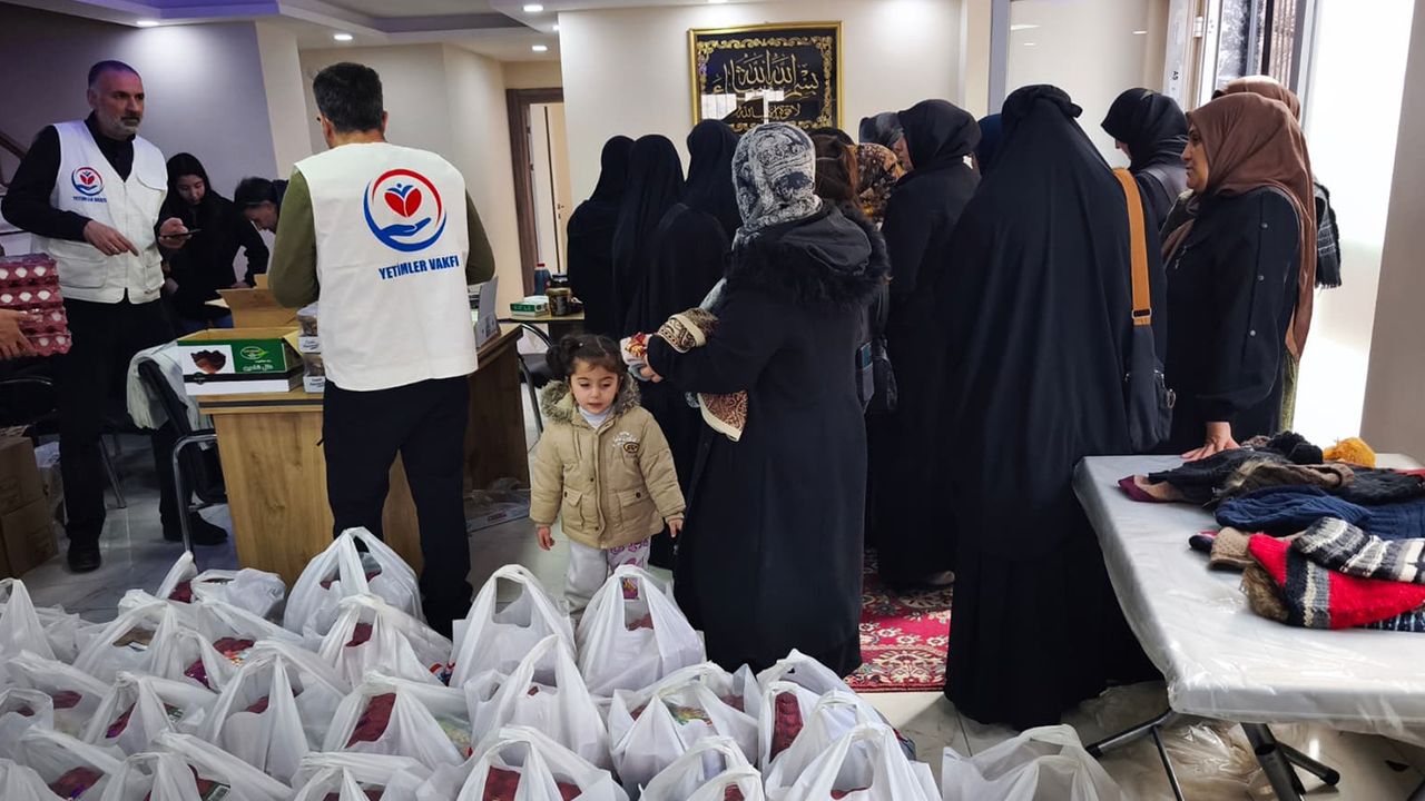 Hayırseverlerin desteğiyle alınan ürünler gönüllülerce hazırlanarak vakıf binasında ailelere teslim edildi.
