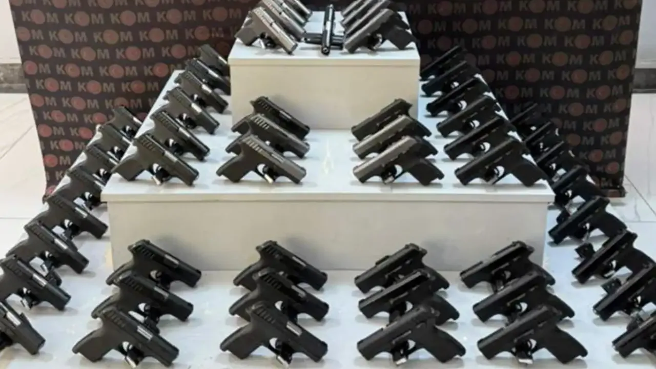 Bagaj bölümünde yapılan aramada iki valiz içerisinde 55 adet ruhsatsız tabanca bulundu.
