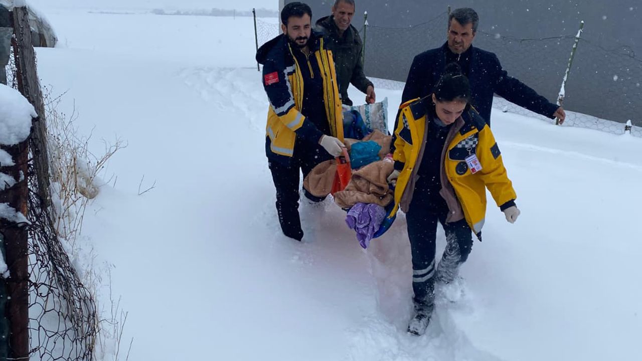 Vücut ateşi yükselen 72 yaşında Ercan Bakır'ın yakınların köy yolları kar yağışı nedeni ile kapalı olmasından dolayı 112 Acil Çağrı Merkezine ihbarda bulundu.